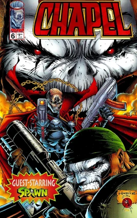In southwest Washington, Lord Chapel has his demon minions build a portal to Hell while his force field destroys all U.S. military forces that approach it. Battlestone is arguing with a general over what to do when Chapel and Spawn arrive to join the fight. Their past ties to Hell enable them to pass through the field. Once inside, they fight their way through various demons and reach the portal. Warned of their entry, Lord Chapel confronts them and invites Chapel to take Crypt’s place as his henchman, but Chapel refuses. Chapel argues with the demon lord while Spawn teleports to the portal and activates it. Lord Chapel and his demon army are sucked into it and sent back to Hell. Spawn saves Chapel from being pulled through it with them. Afterward, Chapel admits he almost accepted Lord Chapel’s offer but decided against it in favor of a second chance at life.