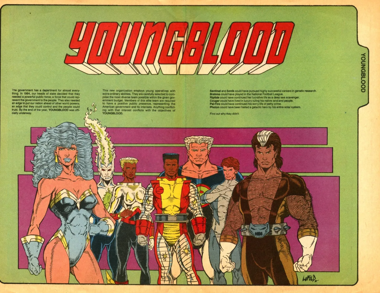 Liefeld's idea for Youngblood as celebrity superheroes: