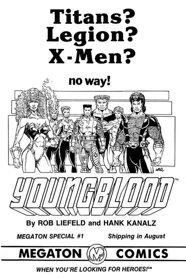Extreme's first comic, Youngblood, was created by Rob Liefeld when he was in high school in the mid-1980s. By 1987, Liefeld wanted to pitch Youngblood to some new independent comic book publishers and landed a job at Megaton Comics, where Youngblood was first published. Rob was a fan of Marvel's Avengers, DC Comics' Teen Titans from Marv Wolfman George Perez, and the Legion of Superheroes, and based on those interests, he combined them to form Youngblood (not to be confused with Project: Youngblood from Eclipse Comics).[1]