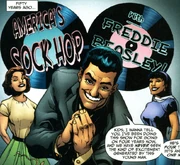 By the modern era The Host took the identity and form of a D-list television dance show host as "Funky" Freddie Beasley who acts in the Faustian tradition of contracting mortals for their souls, and was known to have sponsored the Tranquili-Teens. The Host was also responsible for Zombie Zeke's current state. During the 1950s, Zeke was a famous pop star who turned to The Host for help due to his failing popularity from his sponsors because of his age. The Host have Ezekial sign his contract in return for never aging. But, to his own bargain of the contract The Host scarred Ezekial's face, thus ruining his life.