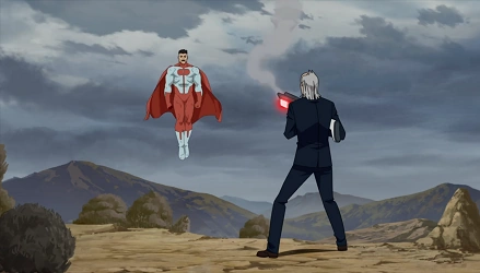 Cecil is told that a new object was approaching Omni-Man's location, turning out to be The Immortal, who catches up to him and immediately starts pummelling him in blind fury. The surprised Omni-Man quickly retaliates, catching one of his punches and callously remarking he should have stayed dead before brutally fending him off. However Nolan worries over Mark who is under the beast's control.
