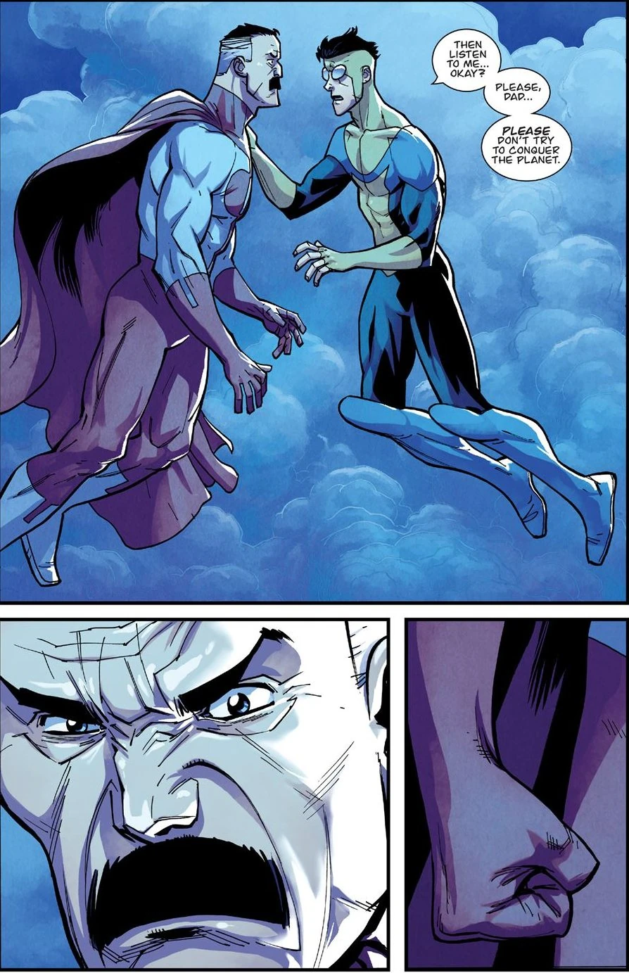 Omni-Man has an emotional reaction to his son knowing his dark secret.