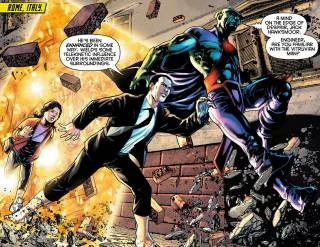 Later, the duo have a conversation about what happened in 5-space, and Jenny tells Midnighter that although she understands his reasons for attempting to kill her, she does not agree with them, and that whether she is socially maladjusted or not is her decision to make, not his.
