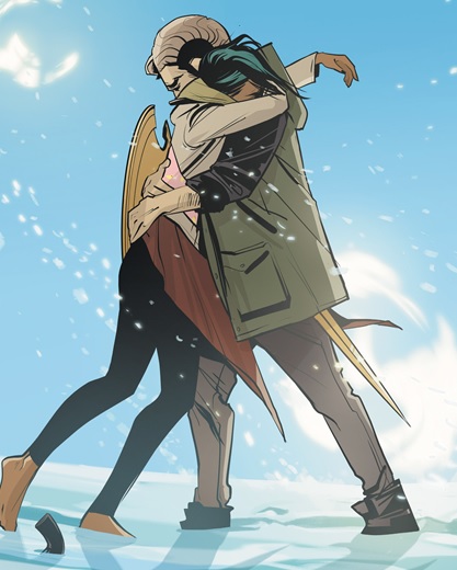 The could were soon found by the Landfall Coalition. The soldiers called in their location but were ordered to kill the two fugitives. When Alana was shot by a deflected bullet, Marko broke his vow of non-violence and entered a berzerker rage to save family. He was only brought out of it by Alana's Heartbreaker shot.[8]