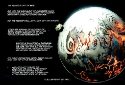 Massive devastation ensues across the world. The Earth is thrown off it's axis and much of the surface is scorched by the blast. Roughly ninety percent of planet's population is gone. Europe is blanketed in a cloud of darkness, the tropics are stuck in a new ice age, and radiation seeps down through the atmosphere.