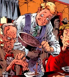 Phil Timper was a man who was in and out of prison and did not have his life together. It was only 11 years ago he found the lord and changed his ways to be a perfect citizen. He is suddenly teleported to Orbital Angel Station and imbued with Elemental Fire to become the next Redeemer. Upon order, he tracked and retrieved Bobby for heavan. He was the first example to ever have been resurrected by Necroplasm magic given to him by a Hellspawn.[1]