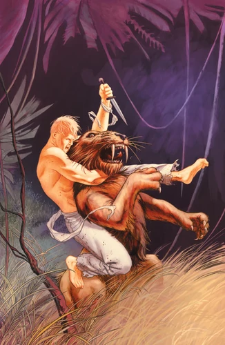 It's 1933, and a haggard Elijah Snow travels up a thin strip of river through a dense jungle, searching for the Lost City of Opak-Re. He finds it, gleaming and golden, at the river mouth. His arrival is met by an immense snake, whose attack Snow confronts with a pistol, with limited success. His unique powers also prove somewhat effective, although ultimately it is Lord Blackstock, a member of British royalty who was raised in the jungle and preceded Snow to Opak-Re, who swings in on a vine and ends the battle. As white men ("minorities," as remark by Blackstock), they become friends, although Snow, who remains in the City to tell stories of the outside world, becomes even closer to the beautiful Anaykah, one of Opak-Re's intellectuals. Blackstock is an adventurer, a man with a "pathological fear of being bored," and Anaykah tells Snow that he basically views the people of Opak-Re as his subjects, even his slaves.