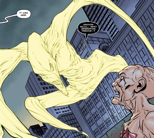Em Cypress wakes up in the fetal position on the shower floor with blood running down the drain. She receives a phone call from her dad but drops the phone and passes out on the floor. She later wakes up and finds a Creep inside her and she realizes she's pregnant.