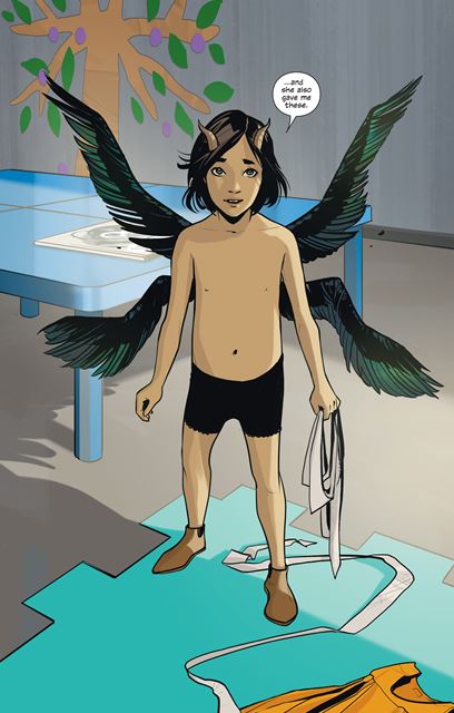 Years later on her fourth birthday, Noreen brings a cupcake to Hazel and wishes her happy birthday. Noreen tells her if she isn't wisked away she will be welcomed back with the prestigious title of "explorer" next year. Hazel runs to tell Klara about the good news. She runs into Petrichor in the shower and sees she has both female and male body parts. Petrichor tells he she's killed plenty of 'wings' in the war before she was kicked out of the army. Klara arrives and scolds Hazel for talking to strangers.
