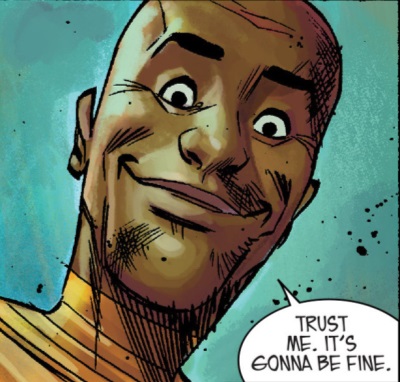 When the group ended up on their fifth dimension. They found a virus was running rampant due to previous dimensionauts. Shawn proposed that their jumps were not random and they continually were running into previous dimensionaut dimensions. He makes them stay and heal virus from the 5th dimension world before leaving. As Grant left, the Shaman attempted to destroy the Pillar. Rebecca stepped in and blew the Shaman's head off shocking Shawn that she would go to such levels of violence.[3] The two frantically attempted to fix the Pillar when Shawn discovered that Rebecca had programmed in the wrong dimension to return home to. Revealing that Rebecca wanted to return to a dimension where she could save her twin brother, she knocked Shawn in the head too hard and killed him.[4]