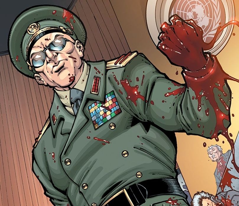 Cho was born in North Korea. After his father died, he would assume his position as dictator. Eventually meeting Set after the former tyrants funeral, with the latter asking for Cho's help. The dimensional traveler tells Cho that his father disappointed the manipulator and advised his successor not make the same mistake.[1] Following cataclysmic events, The Supreme Leader would use Set's technology to run experiments on captured honor students whom he would coerce into unlocking the secrets of his benefactors alt. reality engineering. In order to bequeath a sizable platoon of soldiers superpowers as a trial run, before he moved to give powers to himself. After having these successes killed off in a paranoid tactic to prevent his army from turning on him. Cho sought to proclaim his supremacy over the entire world at the United Nations building after empowering himself. Making a live demonstration over all available news feeds present at the senate by killing a South Korean diplomat during the U.N. meeting. Soon declaring himself ruler of the world and absolving to abolished all governments. Amanda, Black Samson and Franscisco Vasquez would charge towards him but Monster girl would end up punched multiple times with such a speed, that he wouldn't be able to be detected with the human eye. Eventually knocking back Samson as well before tanking an aerial drop from The Immortal. Demonstrating his newfound power by pushing Immortal halfway around the world and into a glacier at the North Pole before heading back to New York. Resuming the battle, Cho would later fight Zandale Randolph and easily defeat him. Next, He would contend with Brit only to see that route is futile as neither are able to harm one another given the nature of their powers. Cecil Stedman jumps through the teleportation portal bearing news of the world's surrender. He takes him through a room with many beautiful women. However, it was deception and a science major Cho had kidnapped to work Set's technology was crushing him with intensified gravity. The machine kills Cho after crushing his body to mush. [2]