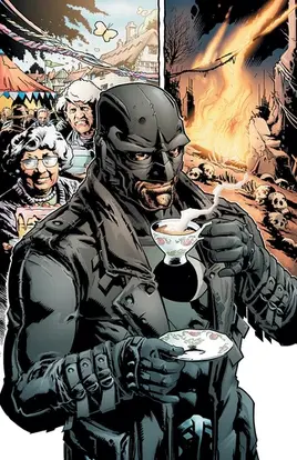 Elsewhere in the town, a maid approaches her master, identified only as 'Charles' and tells him that Team Unicorn was defeated. He becomes angered by the news, tells the maid to take his wife and kids indoors, and proceeds to fly up into the air. As he does, his human face slowly morphs into the face of a clock. He descends towards Midnighter, Angie, and Swift telling them he won't have them disturbing his family. He then attacks the three of them with some sort of energy wave.